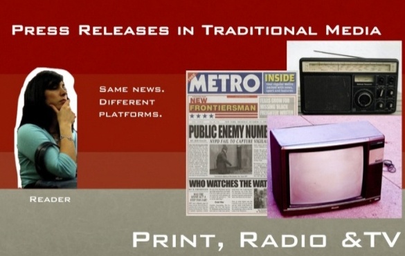 News releases work well in the traditional media ecosystem. PR specialists pitch stories about their clients by contacting print publications, radio stations and TV channels. Usually, they spread the same content--press releases, event announcements, interviews--across different platforms in an attempt to increase publicity for their customers.