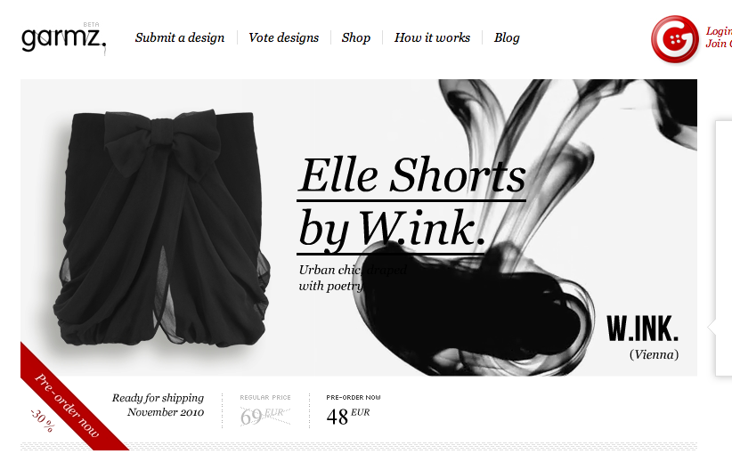 Garmz was one of the start-ups that made me go, "Wow." And not because it introduced a necessarily new idea--but because it introduced some form of social change, wrapped up in a beautifully designed site. It is a platform that allows you to start your own fashion label and participate in selecting the winning models by voting. "If a design is successful, Garmz handles the complete production, at zero cost and risk for the designers." The mission and the platform seemed to have blended in an exquisite selection of fashion designs.
